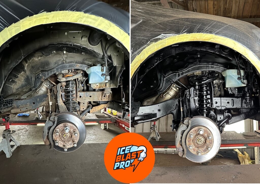 Dry ice blasting is an innovative cleaning technology that uses solid CO2 (carbon dioxide) pellets. These pellets are propelled at high speeds to clean surfaces. Unlike traditional cleaning methods, this process does not involve water or abrasive materials, making it incredibly safe and effective for delicate areas like engine bays, undercarriages, and even car interiors.