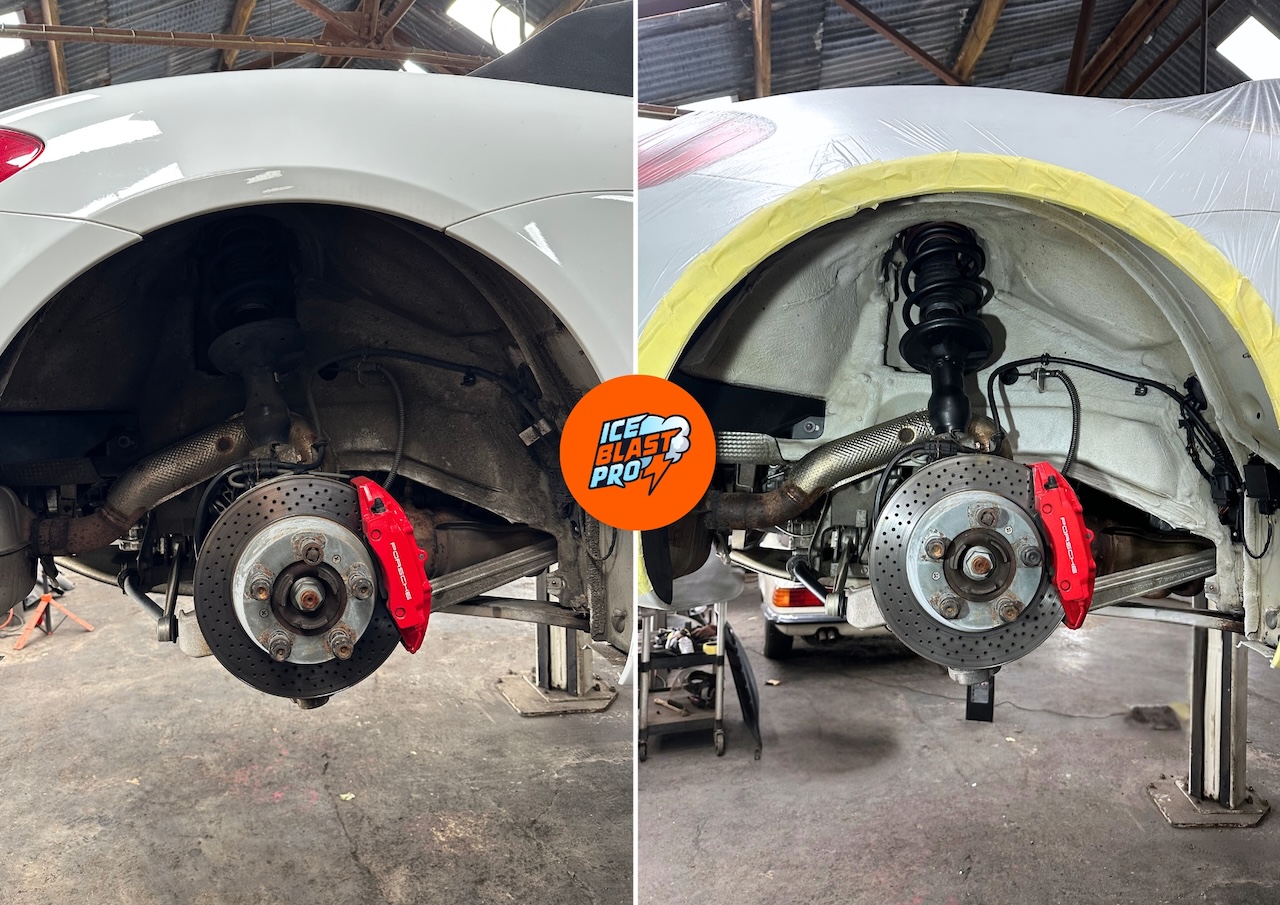 Compared to jet washing, which introduces water, or mechanical abrasion such as wire wheeling, which can be inconsistent and aggressive, dry ice blasting prepares the surface in a controlled way, making it ideal for underbody preservation.